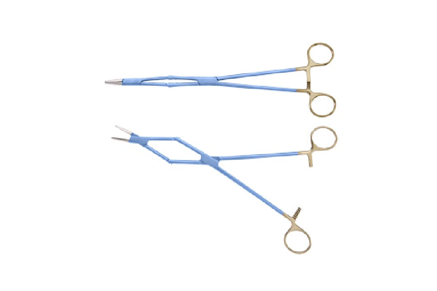 Titanium vascular hooks with measurement gauge for precision handling.